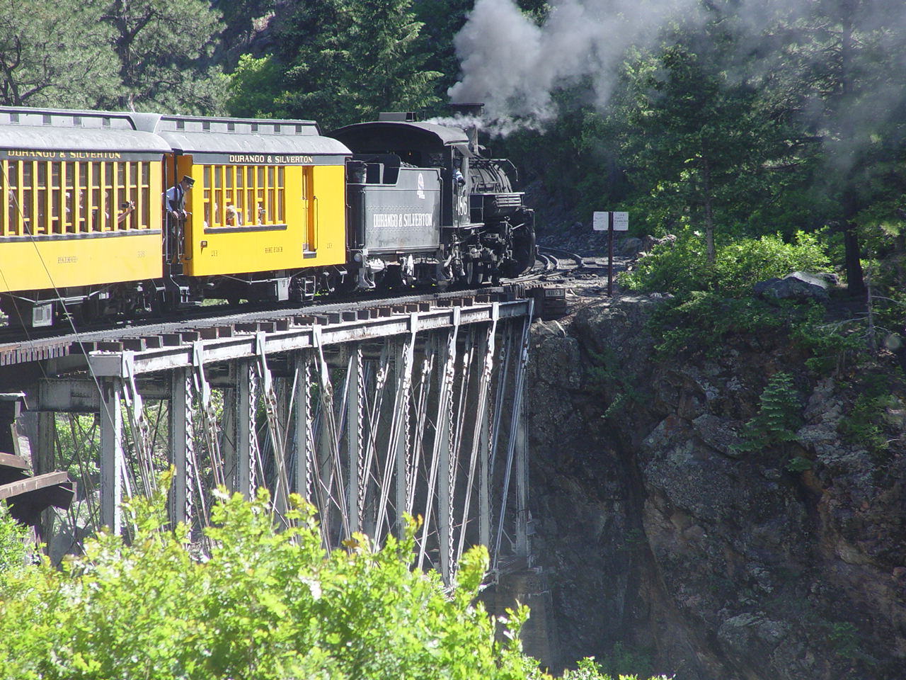 | Looking down at the Animas below the bridge