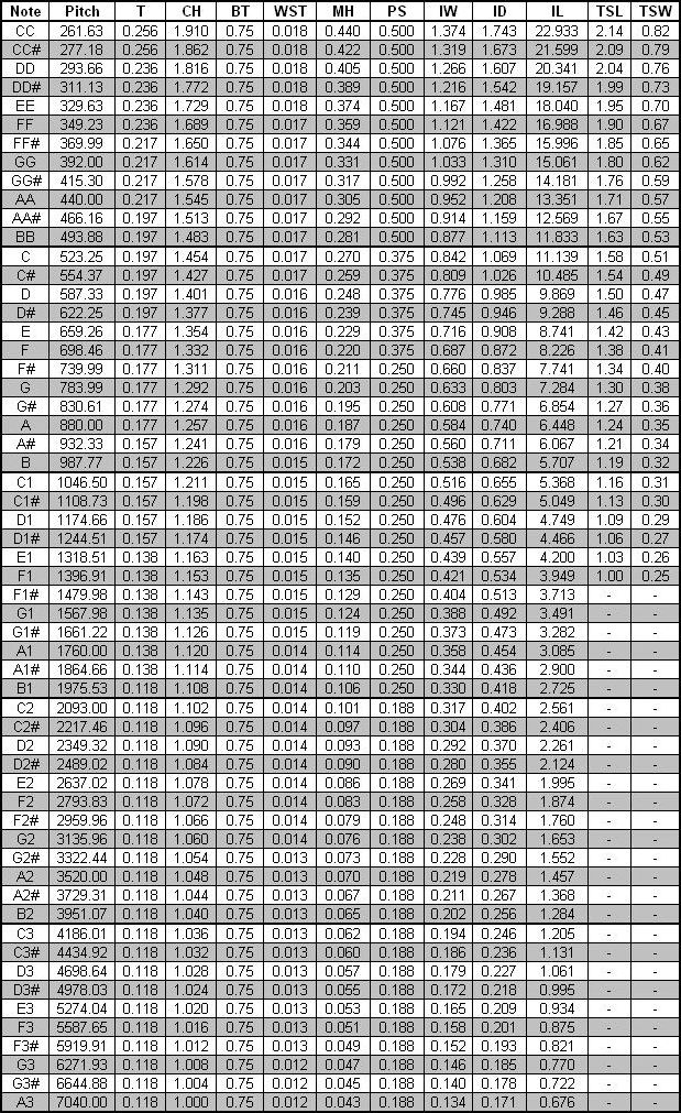 | WST | Windsheet Thickness | TSL | Tuning Slot Length |