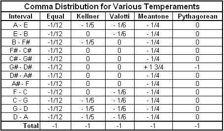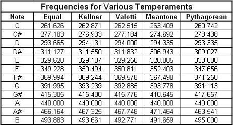 Here is a table of some other temperaments: