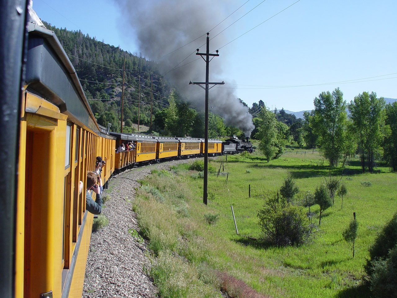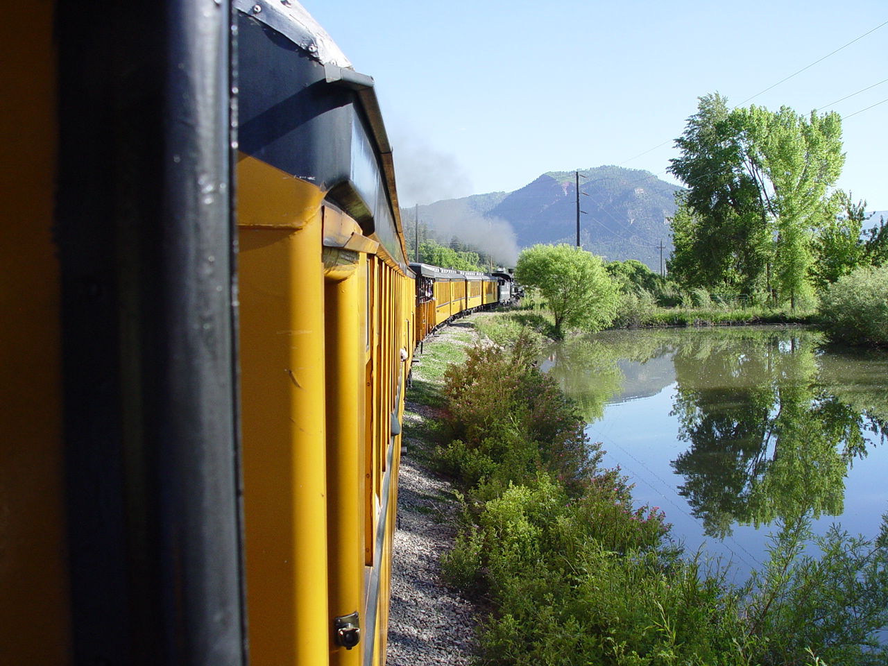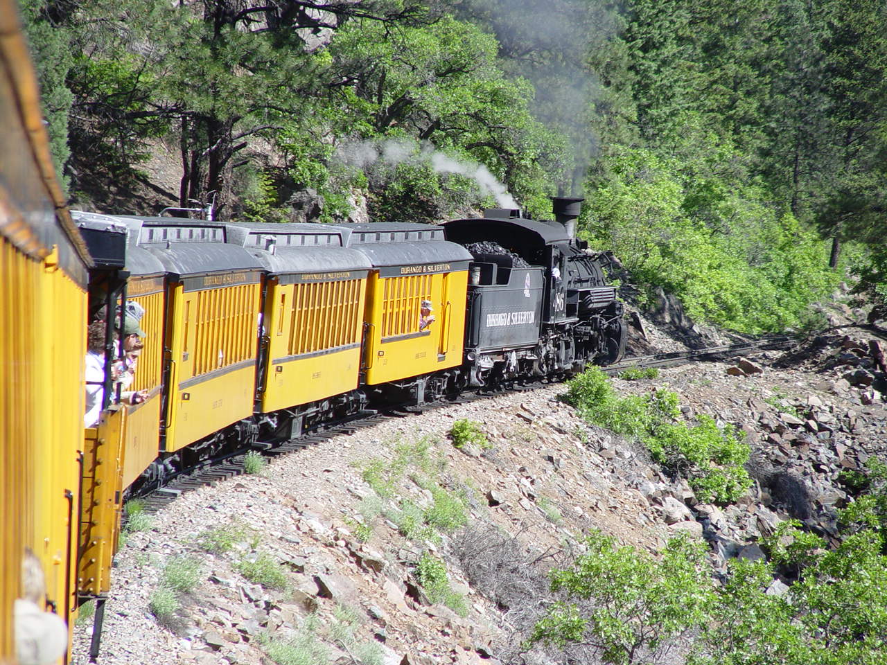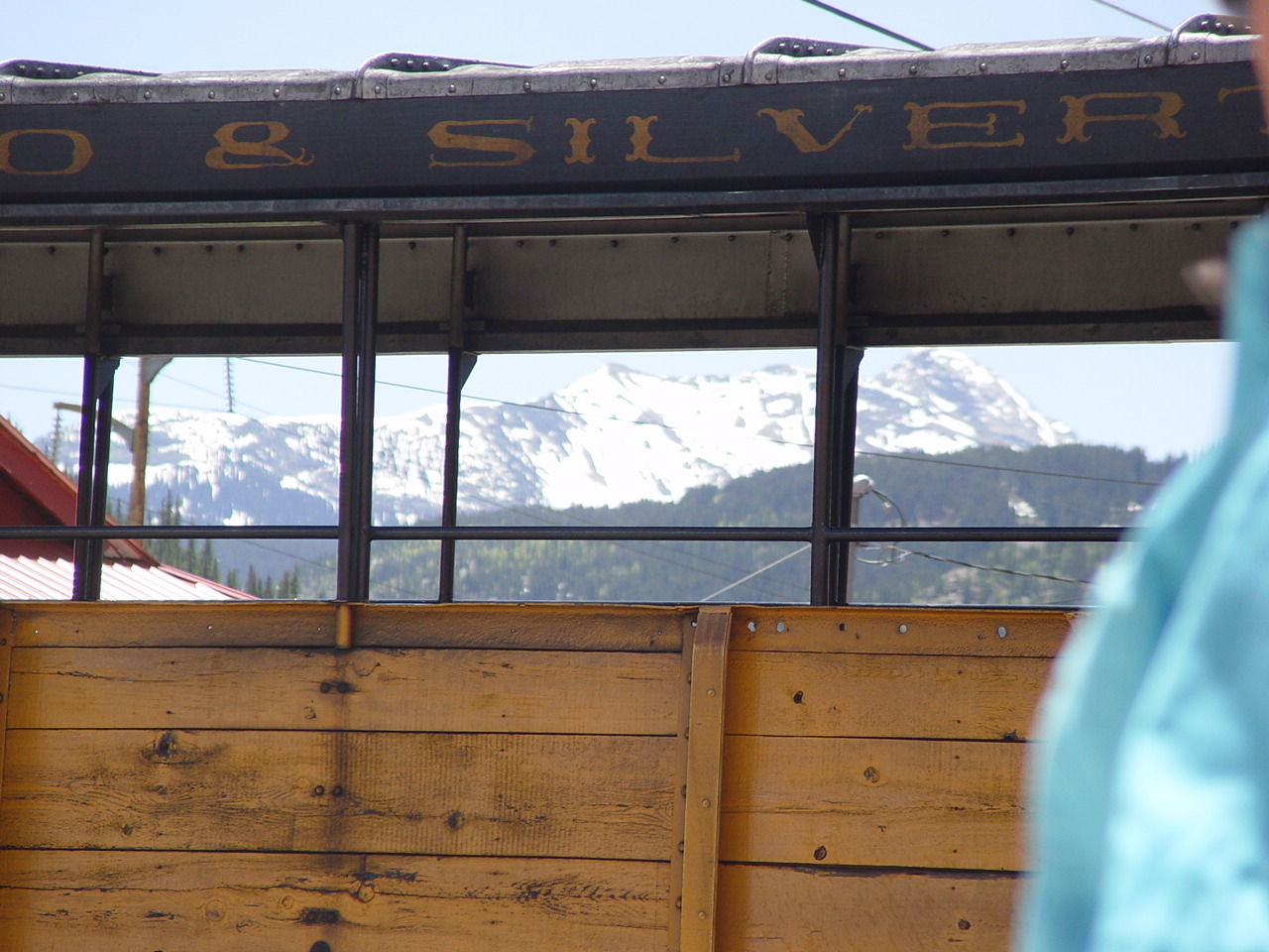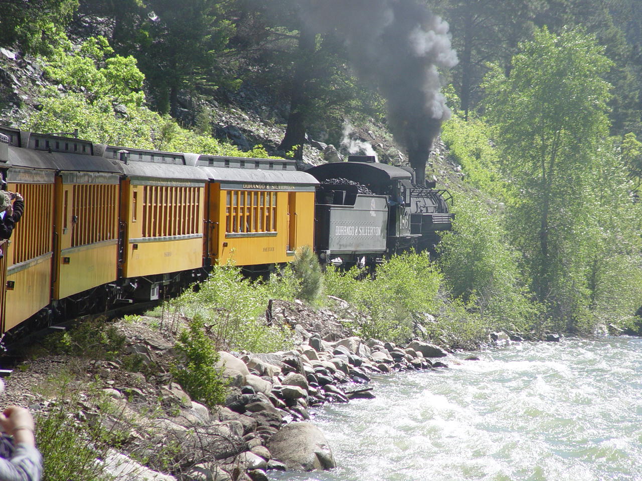 | Looking down at the Animas between the cars