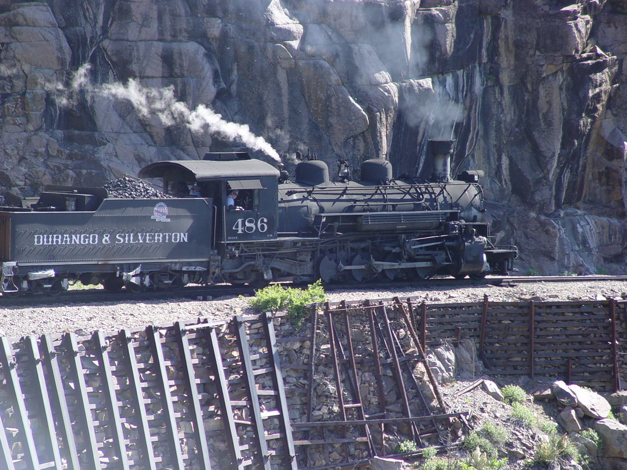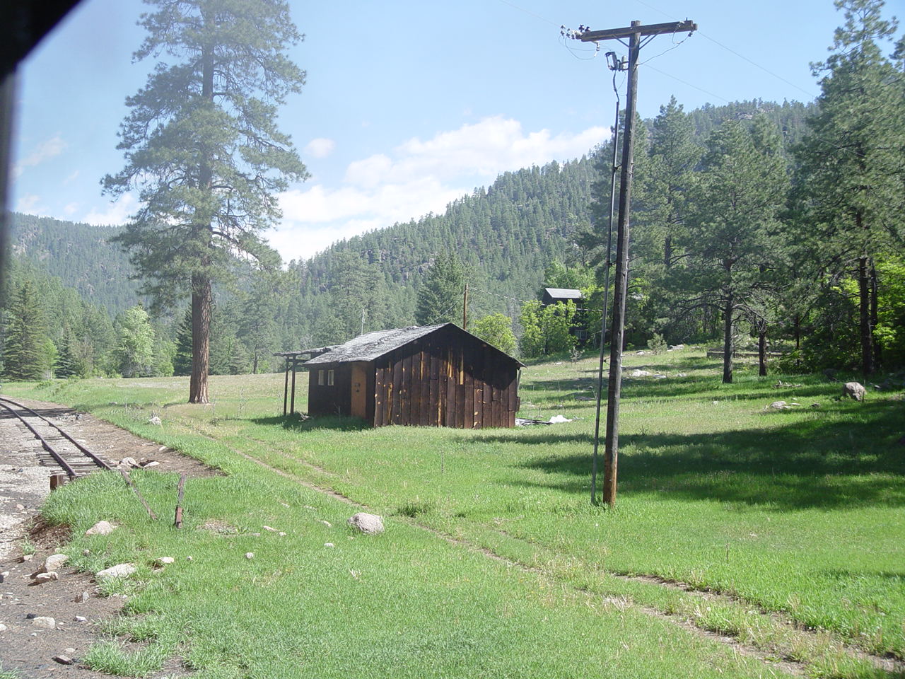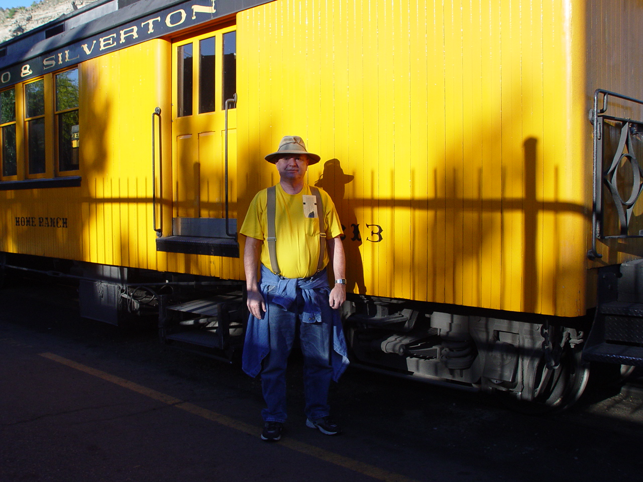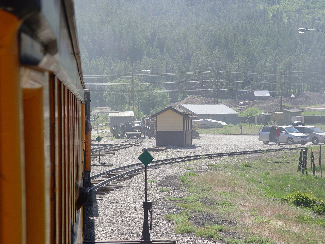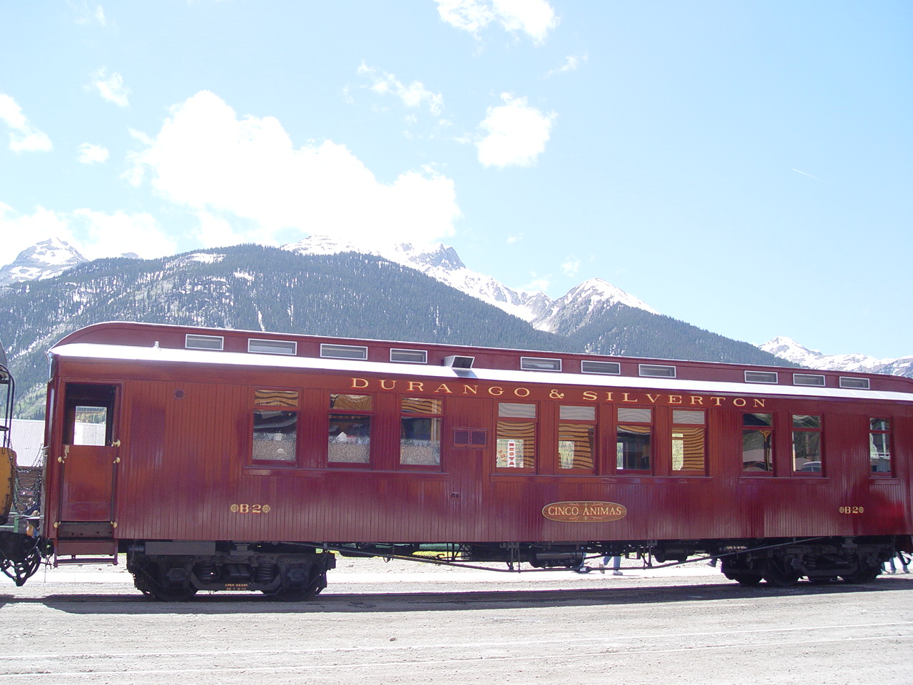 | Looking down at the Animas between the cars