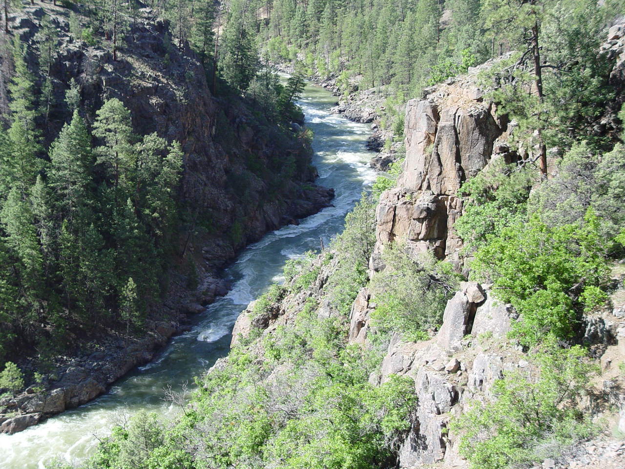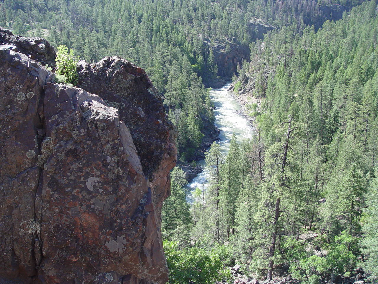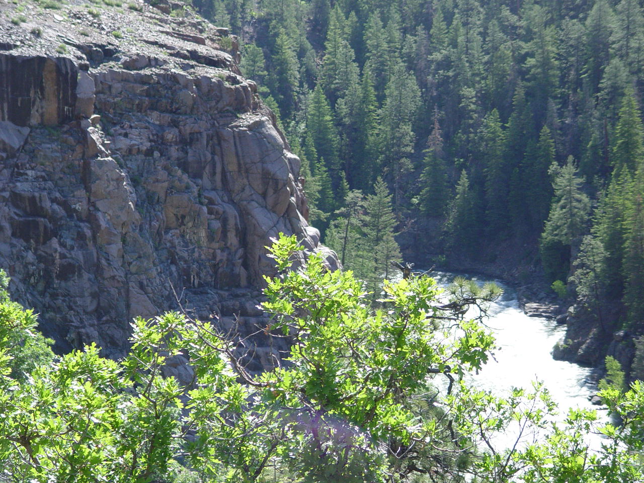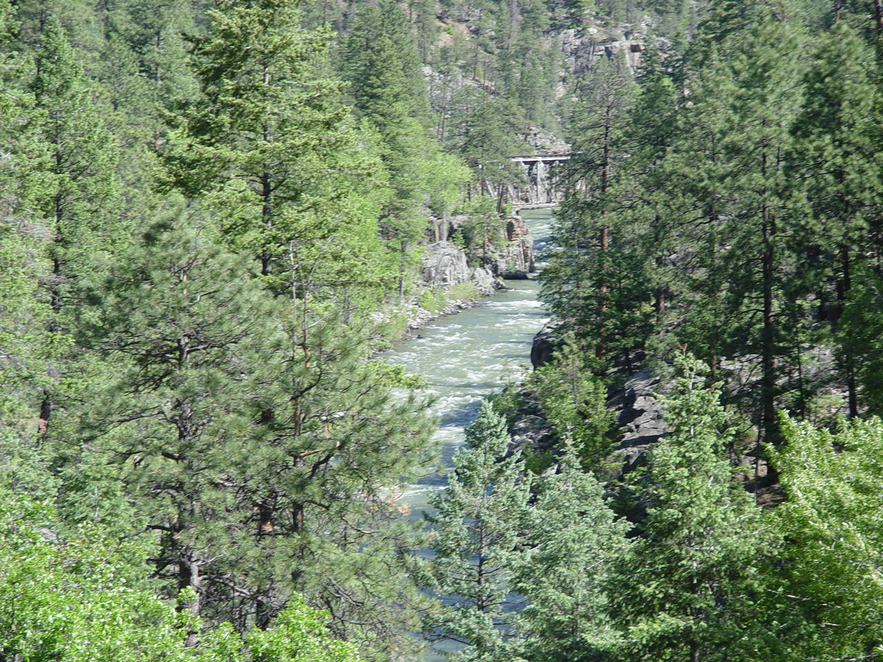 | Looking down at the Animas below the bridge