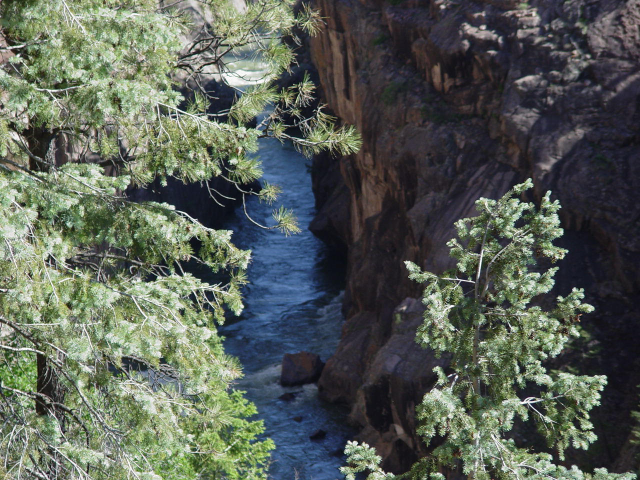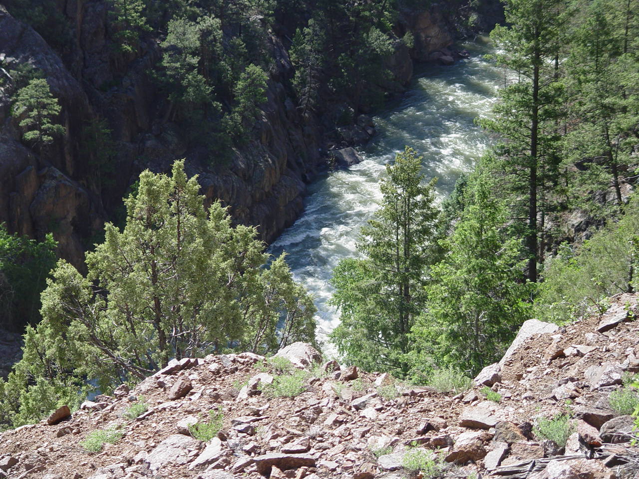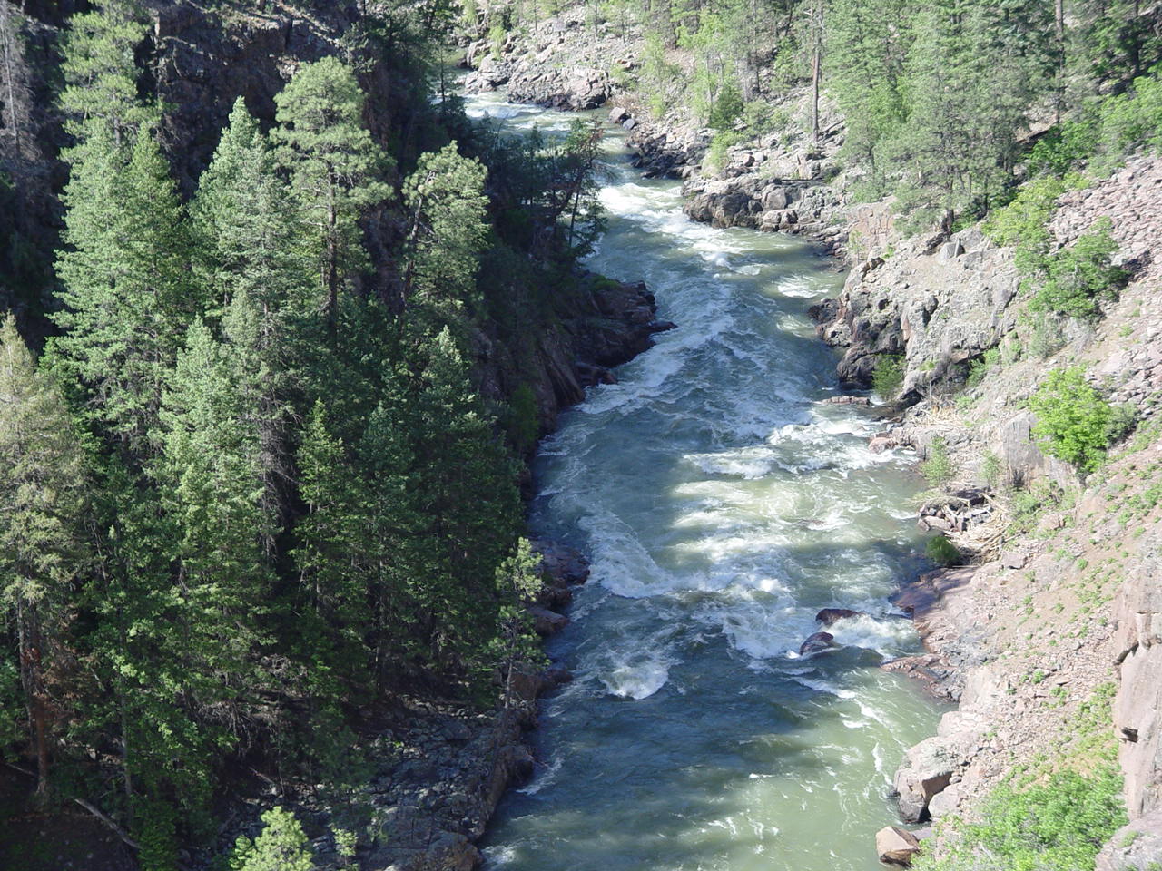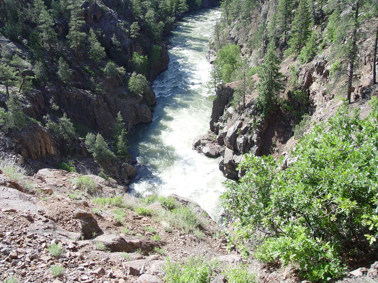 | Looking down at the Animas below the bridge