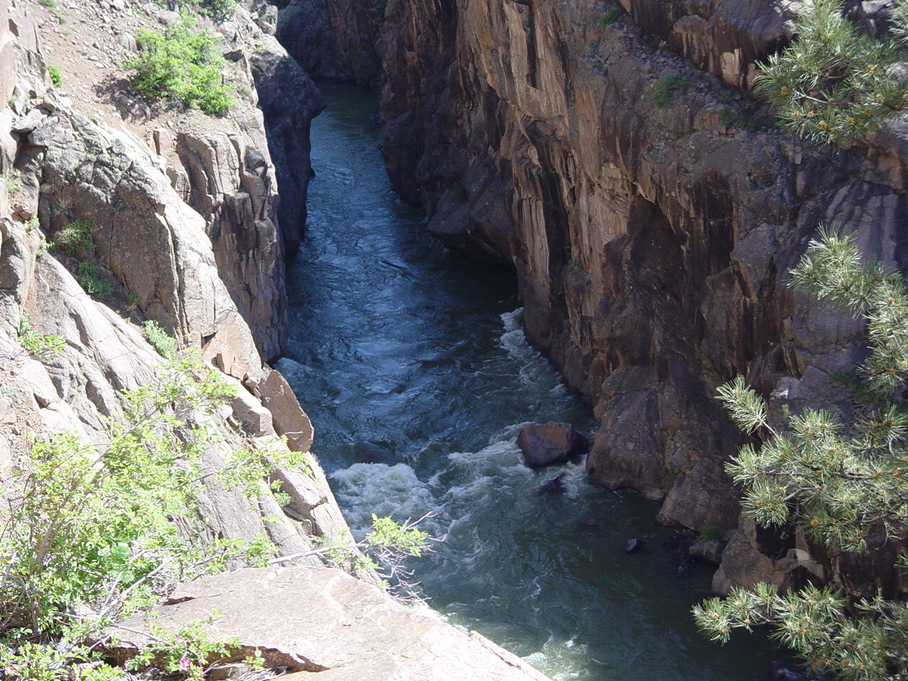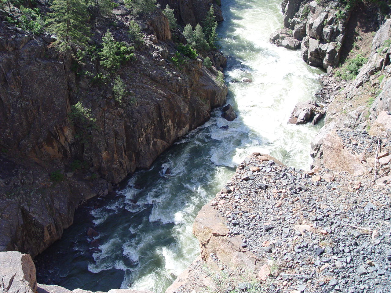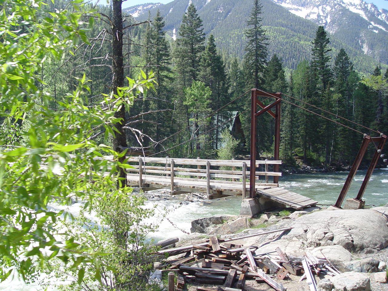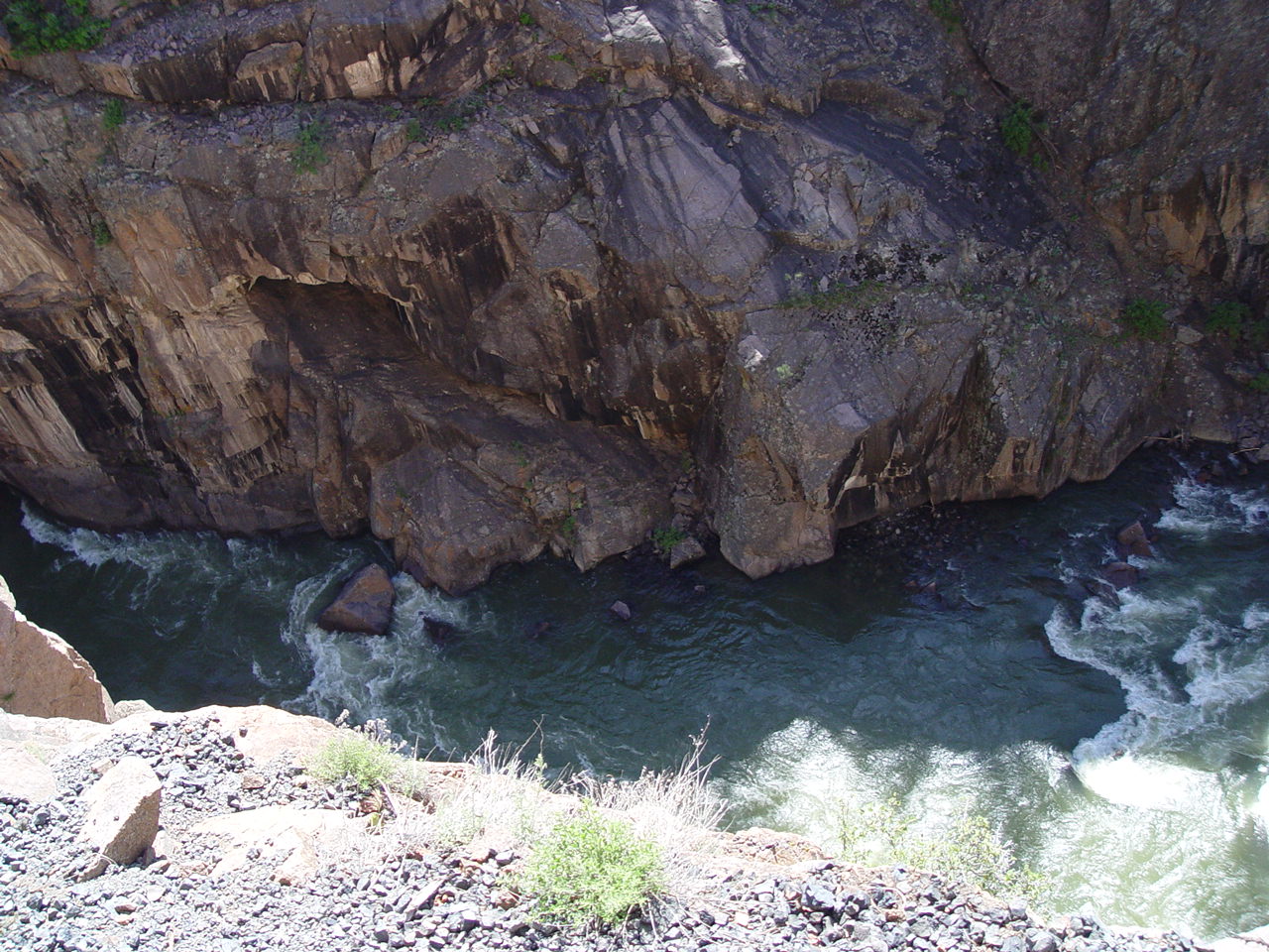 | Looking down at the Animas below the bridge