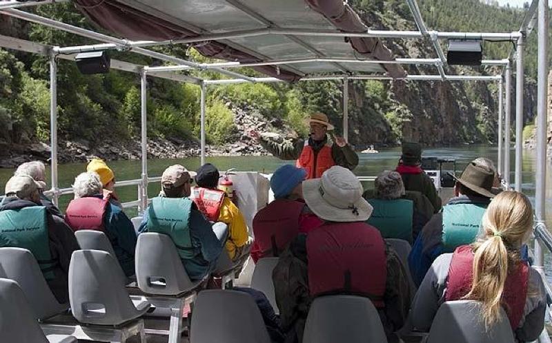 | This is the bottom of the Black Canyon of the Gunnison. We are walking on the original narrow guage road bed of the Denver & Rio Grande. You hike about 3/4 mi. to get to the dock. |