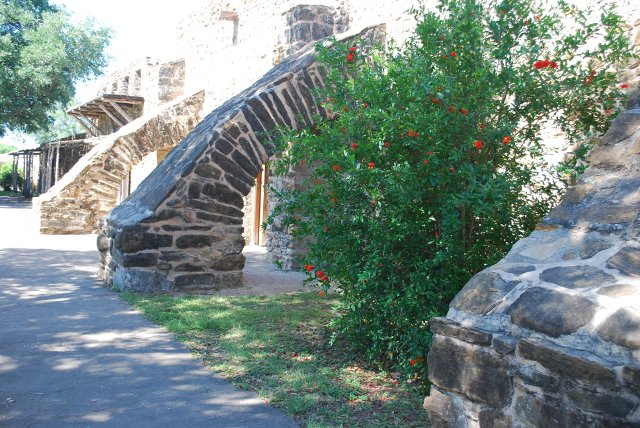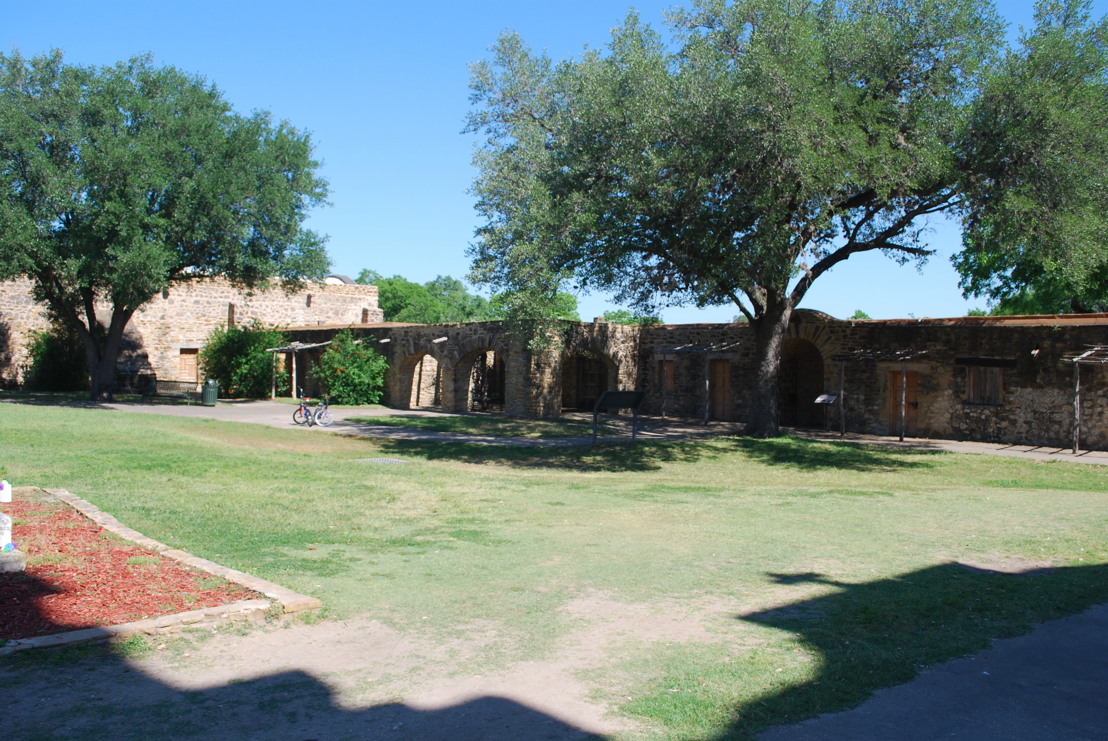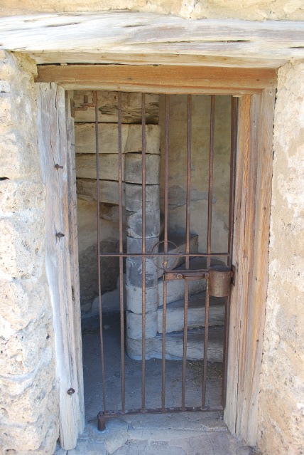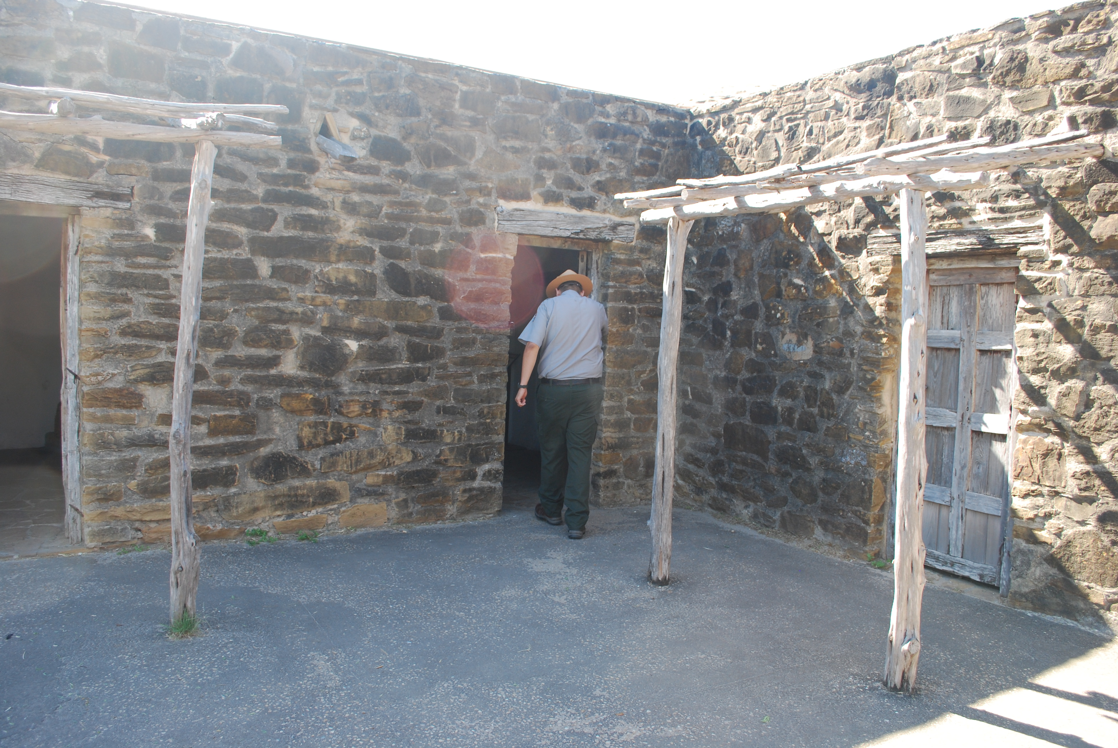 | The ranger enters one of the indian quarters rooms in the south east corner near the turret. The posts and frames in front and above each door was a kind of arbor, to be covered by vines etc. so there would be a cool shady spot in front of each apartment. |