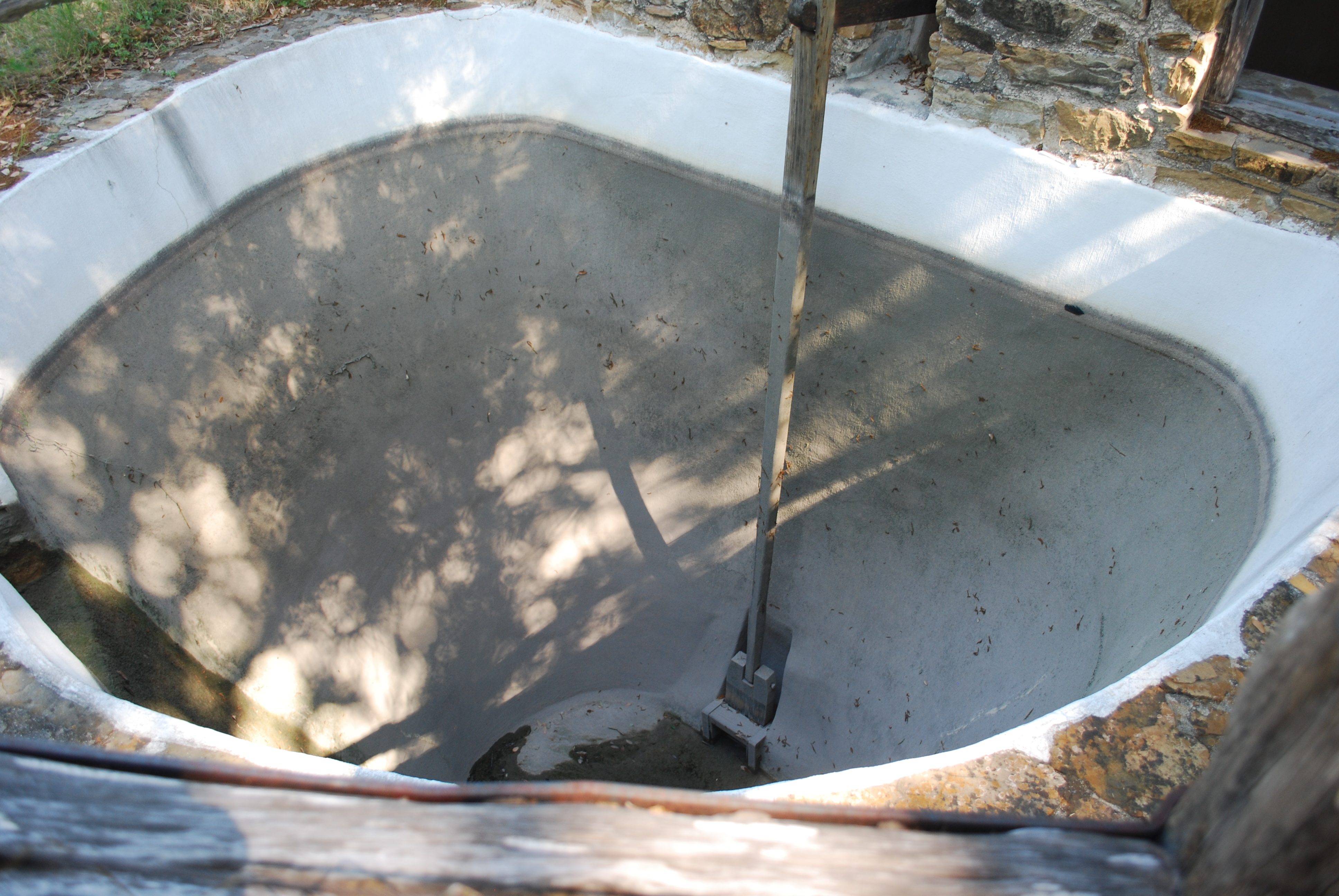 | The penstock, you can see the valve at the bottom to control the water flow across the water wheel on the lower level. |