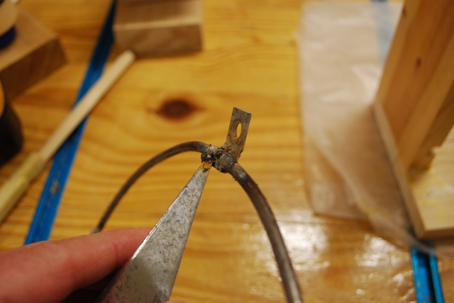 This was an angle bracket that I bent and screwed to the wood to hold the end of the rod while bending.