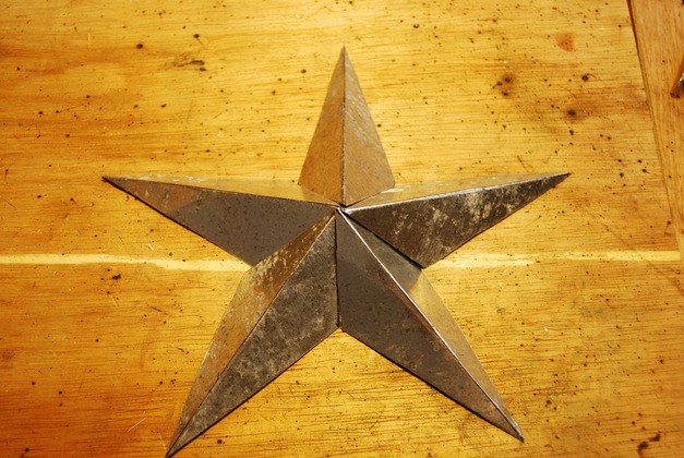 These BarnStars are 3 dimensional, have 5 points, and usually have a metal ring around them (I assume for support).