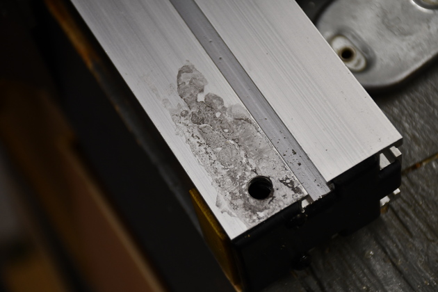 Some of the corrosion can be seen in the threads of the lock bar. |